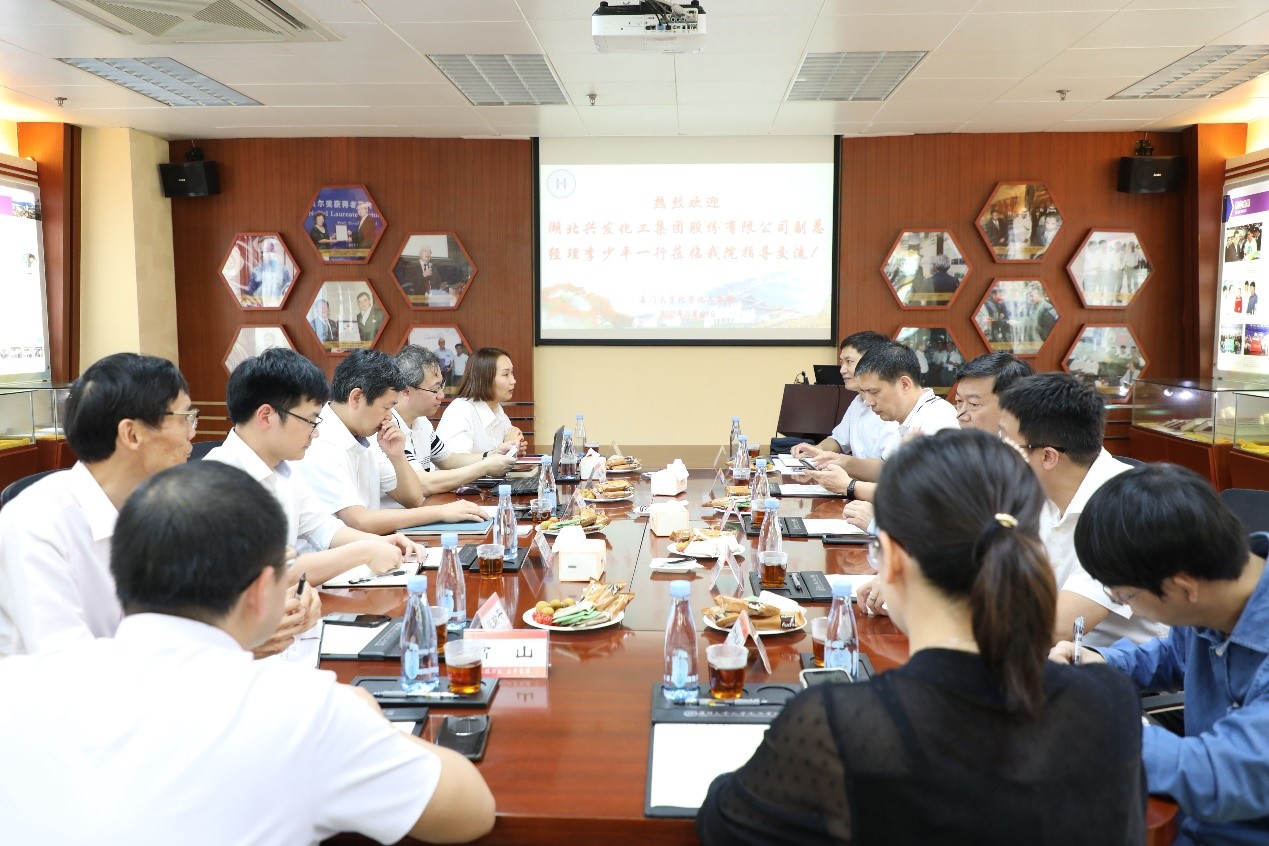 谢院长对远道而来的客人表示欢迎。他说,学院一贯重视校企合作,希望以本次交流为契机,双方精诚合作携手加快产学研用一体化进程,努力推进取得实效。洪文晶教授简要介绍了化学化工学院以及正在重组的高端电子化学品国家工程研究中心的基本情况。袁友珠主任介绍了课题组数个具有产业应用前景的项目的概况。马会娟部长详细介绍了兴发集团的基本情况以及发展规划。双方对电子化学品和催化领域的技术合作内容展开了热烈讨论。