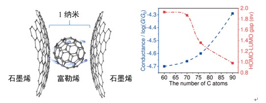 该工作基于改进的单分子器件构筑仪器和新型的石墨烯电极芯片,制备了一系列尺寸在1纳米左右的石墨烯/富勒烯/石墨烯器件系统表征了其电输运性质。从实验上证明采用不同的富勒烯可实现对该器件的能带调节,从而实现达一个数量级以上的电导调控。在国际上首创了制备具有原子级规整结构的富勒烯基全碳电子器件的技术,从而将碳基电子器件推进至亚纳米的极限尺寸,对于全碳电子学的发展具有重要意义,有望发展成为下一代碳基芯片技术的核心材料与器件。